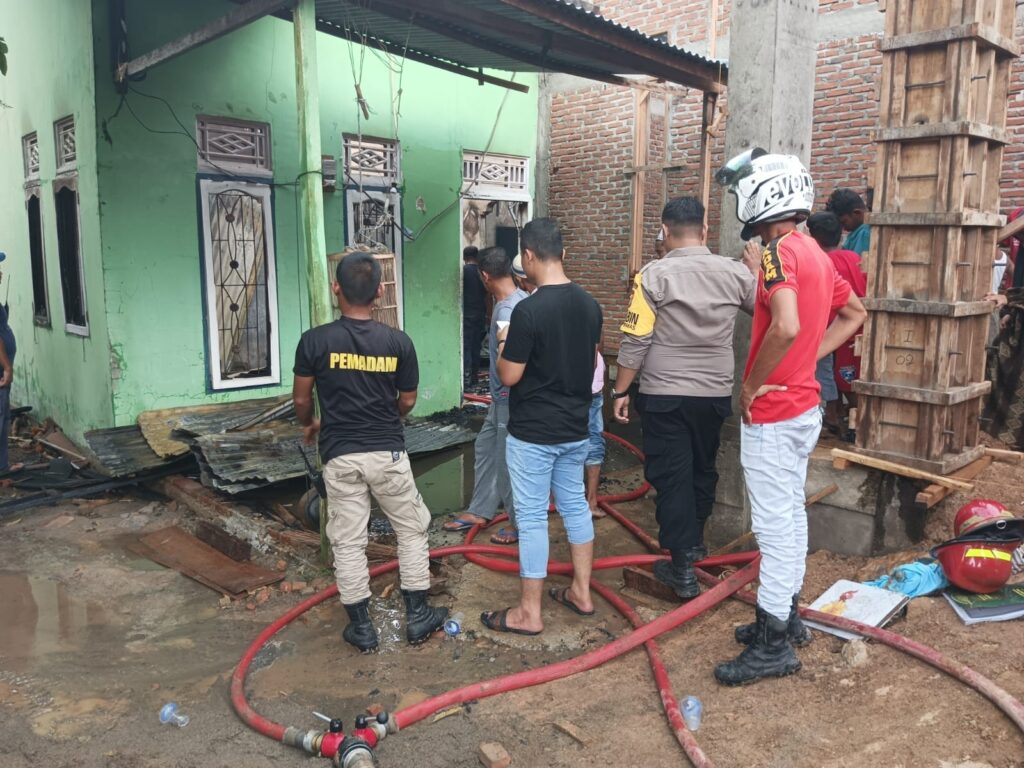LHOKSEUMAWE – Satu unit rumah warga Meunasah Keeh, Kecamatan Meurah Mulia, Aceh Utara, wilayah hukum Polres Lhokseumawe terbakar, Senin (8/5/2023), personel Polsek Meurah Mulia amankan TKP.