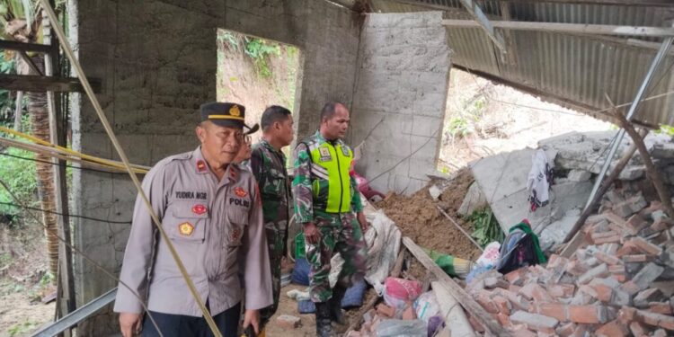Rumah Warga Tertimpa Longsor, Polsek Muara Dua Evakuasi Lansia dan Cek Lokasi Bencana