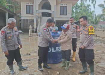 LHOKSEUMAWE – Personel Polsek Muara Dua Polres Lhokseumawe bersama Danposramil Muara Dua dan pihak Kecamatan Muara Dua bergerak cepat menuju lokasi bencana untuk melakukan pengecekan rumah warga yang tertimpa tanah longsor serta mengevakuasi seorang lansia terdampak banjir, Jumat (28/11/2025) sekitar pukul 10.00 WIB.
