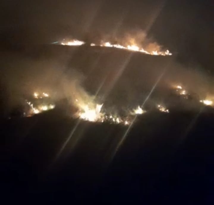 LHOKSEUMAWE – Rumput ilalang di atas lahan seluas 0,5 hektar di lereng bukit Goa Jepang, Desa Blang Panyang, Kecamatan Muara Satu Kota Lhokseumawe terbakar, Rabu (22/11/2023) malam, personel Polsek Muara Satu datangi TKP.