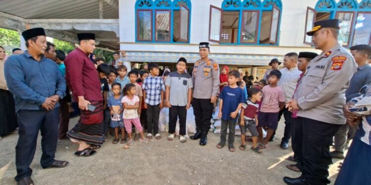 Salurkan Bantuan untuk Warga Banjir di Nisam, Kapolres Lhokseumawe Ceriakan Anak-Anak dengan Hafalan Al-Qur’an dan Sholawat