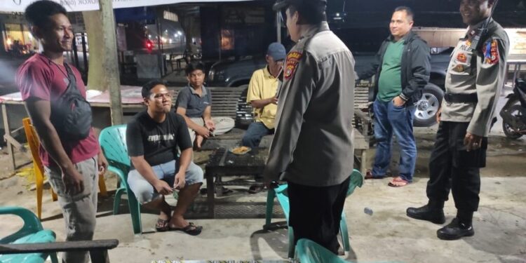 LHOKSEUMAWE – Personel Polsek Syamtalira Bayu melaksanakan patroli rutin dan menyambang warga dk warkop di seputaran Kecamatan Syamtalira Bayu, Aceh Utara, wilayah hukum Polres Lhokseumawe, Sabtu (11/2/2023) malam.