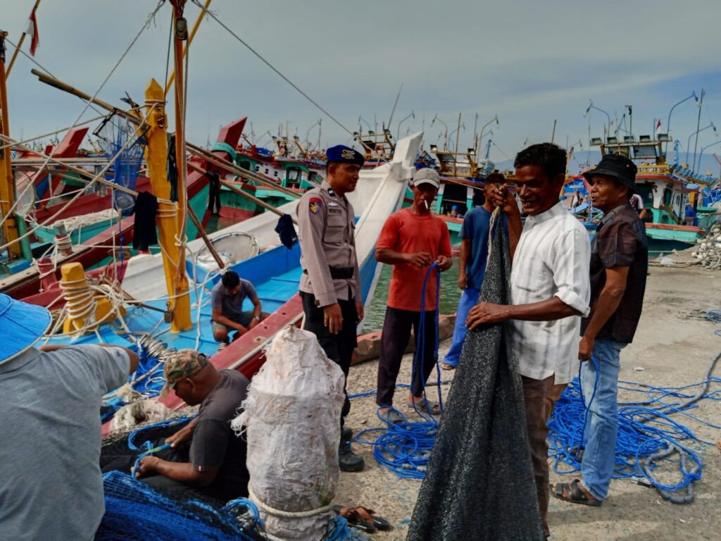 LHOKSEUMAWE – Personel Sat Polair sambangi Nelayan di PPI Pusong lama, Kecamatan Banda Sakti, Kota Lhokseumawe wilayah hukum Polres Lhokseumawe, rabu (14/8/2024) pagi.