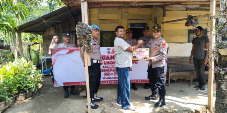 Lhokseumawe – Dalam rangka menyambut Hari Bhayangkara ke-79, Kapolsek Blang Mangat menyalurkan bantuan sosial (bansos) kepada masyarakat yang membutuhkan di wilayah hukum Polsek Blang Mangat, Kota Lhokseumawe, Jumat (27/6/2025) sore.
