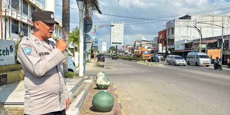 Lhokseumawe – Menyambut Hari Ulang Tahun (HUT) ke-80 Kemerdekaan Republik Indonesia, personel Satuan Binmas Polres Lhokseumawe mengimbau masyarakat yang beraktivitas di seputaran Kota Lhokseumawe untuk memasang bendera merah putih di depan rumah masing-masing, Jumat (8/8/2025) sore.