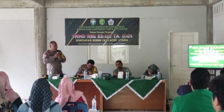 LHOKSEUMAWE, Dalam rangka mendukung program TNI Manunggal Membangun Desa (TMMD) Reguler ke-122 Tahun 2024, Satuan Bimbingan Masyarakat (Sat Binmas) Polres Lhokseumawe Polda Aceh, mengadakan penyuluhan mengenai wawasan kebangsaan, hukum, keamanan, dan ketertiban masyarakat (Kamtibmas), serta pertanian. Kegiatan ini dilaksanakan di Meunaah Gampong Paloh Punti Kecamatan Muara Satu Kota Lhokseumawe dan dihadiri oleh warga setempat dan Perwakilan Mahasiswa Universitas Malikussaleh Kota Lhokseumawe . Selasa .08/10/2024 pagi .