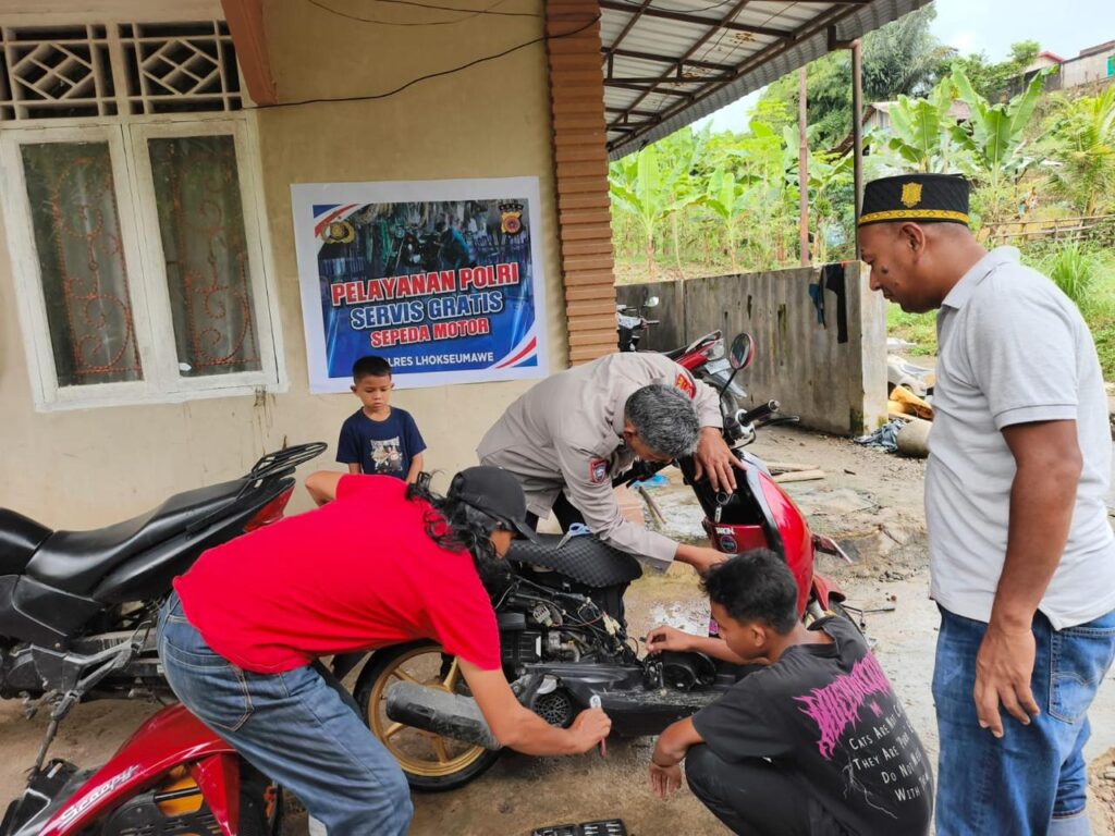 Lhokseumawe – Dalam rangka meningkatkan kualitas pelayanan serta mempererat hubungan antara Polri dan masyarakat, personel Satuan Pembinaan Masyarakat (Sat Binmas) Polres Lhokseumawe melaksanakan kegiatan servis motor keliling dan cuci motor gratis bagi warga, Senin (15/12/2025).