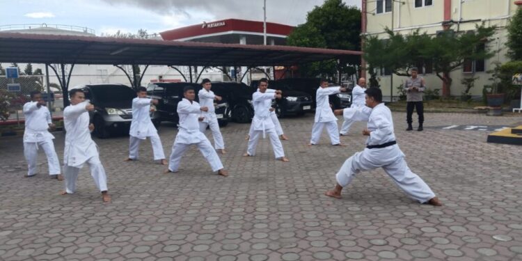 Lhokseumawe – Dalam rangka meningkatkan kemampuan dan kesiapsiagaan petugas pengamanan di lingkungan kerja, personel Satuan Binmas Polres Lhokseumawe memberikan pelatihan bela diri kepada Satpam Depo Pertamina, Senin sore (14/7/2025).