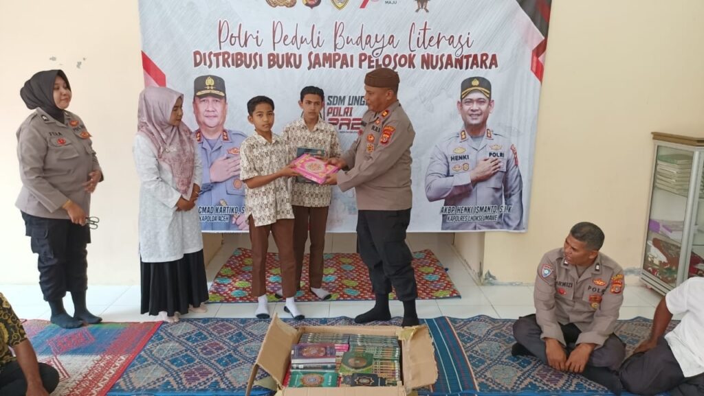 “Ini merupakan atensi kapolres Lhokseumawe dalam rangka Polri peduli budaya literasi distribusi Al Qur’an dan buku sampai ke pelosok Nusantara,” ujar Kapolres Lhokseumawe, AKBP Henki Ismanto melalui Kasat Binmas, Iptu Zahabi.