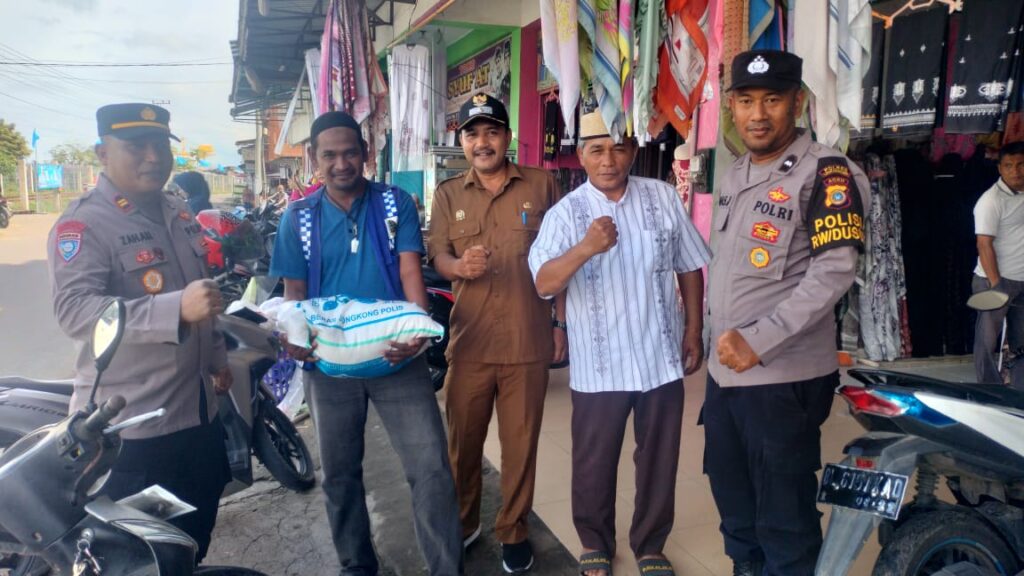 LHOKSEUMAWE – Personel Sat Binmas Polres Lhokseumawe menyerahkan bantuan paket sembako kepada mantan pengguna Narkoba di Kecamatan Dewantara, Aceh Utara, wilayah hukum Polres Lhokseumawe, Selasa (28/11/2023).