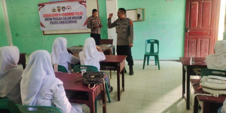 LHOKSEUMAWE – Sat Binmas Polres Lhokseumawe melaksanakan kegiatan sosialisasi program E-Learning “Polri Mengajar” kepada siswa/i kelas XII SMA Negeri 05 Kota Lhokseumawe, Rabu (11/2/2026) pagi.