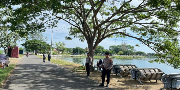 LHOKSEUMAWE – Dalam rangka menjaga keamanan dan ketertiban masyarakat yang ramai akan kegiatan olah raga jalan Santai dan lari pagi, personel Satuan Pengamanan Objek Vital (Sat Pamobvit) Polres Lhokseumawe melakukan pengamanan dan patroli di kawasan Waduk Pudong, Kecamatan Banda Sakti, Kota Lhokseumawe, Minggu (29/6/2025) pagi.