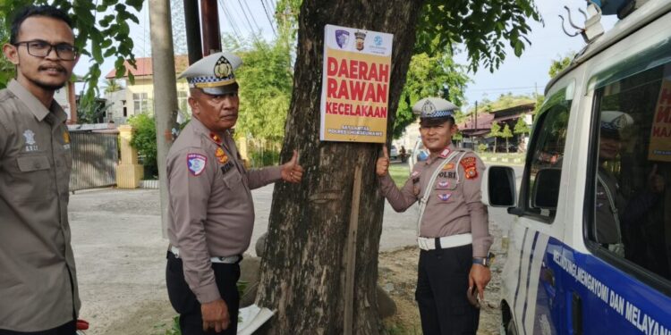 Lhokseumawe – Dalam upaya menekan angka kecelakaan lalu lintas, Satuan Lalu Lintas (Satlantas) Polres Lhokseumawe bersama Jasa Raharja Cabang Lhokseumawe melaksanakan kegiatan pemasangan spanduk imbauan di sejumlah titik rawan kecelakaan (blackspot), Rabu (21/5/2025) pagi.