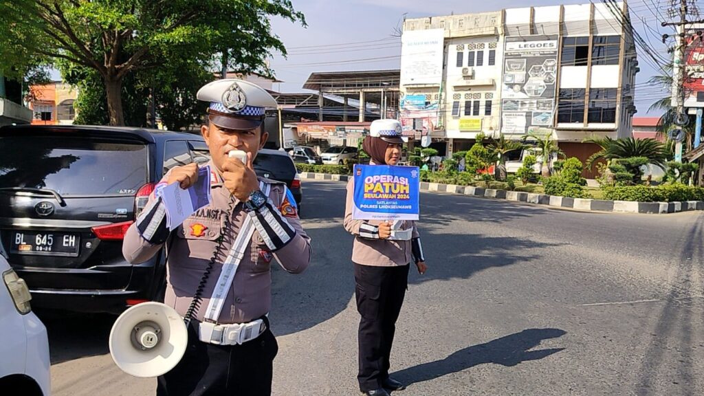 LHOKSEUMAE – Unit Kamsel Satlantas Polres Lhokseumawe melaksanakan penyuluhan keliling (meupep-pep) dalam rangka Operasi Patuh Seulawah 2024 di Kota Lhokseumawe, Rabu (24/7/2024) pagi.