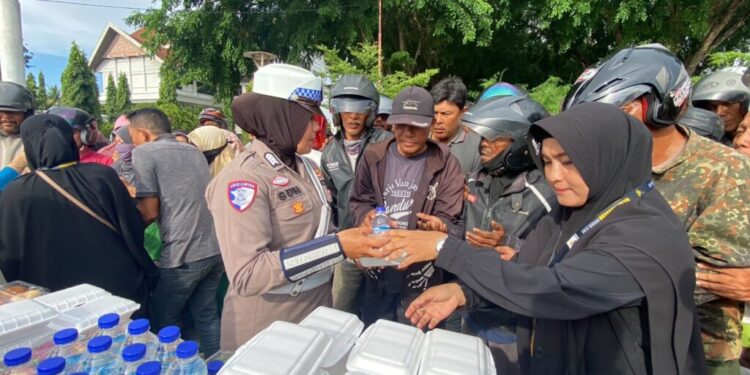 Satlantas Polres Lhokseumawe Laksanakan Jumat Barokah, Bagikan Nasi Kotak dan Edukasi Tertib Lalu Lintas