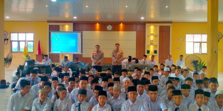 LHOKSEUMAWE – Personel Polsek Blang Mangat melaksanakan program “Saweu Sikula” di SMA Al-Quran Arraudhah, Desa Blang Weu Panjoe, Kecamatan Blang Mangat, Kota Lhokseumawe, Senin (13/11/2023).