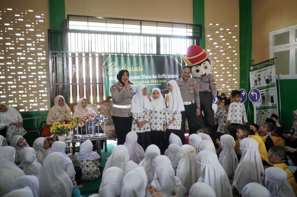 LHOKSEUMAWE – Polantas Polres Lhokseumawe melaksanakan program Saweu Sikula dengan mengunjungi sekolah Yayasan Diana As-Saffa Islamic Kota Lhokseumawe, kamis (22/2/2024) pagi.