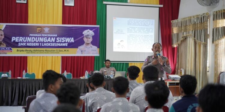 Kapolres Lhokseumawe AKBP Henki Ismanto melalui Kasat Lantas AKP Ridho Rizky Ananda, S.T.K menyebutkan, dalam program tersebut personil Polantas menyampaikan pesan kamtibmas kepada siswa terkait pencegahan perundungan siswa.