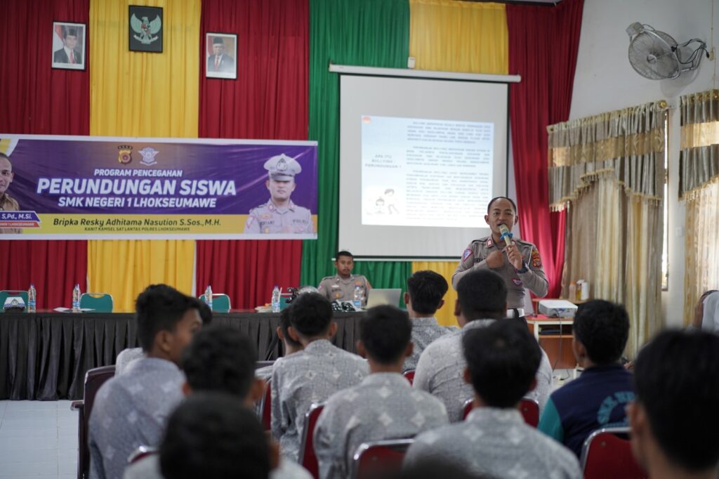 Kapolres Lhokseumawe AKBP Henki Ismanto melalui Kasat Lantas AKP Ridho Rizky Ananda, S.T.K menyebutkan, dalam program tersebut personil Polantas menyampaikan pesan kamtibmas kepada siswa terkait pencegahan perundungan siswa.