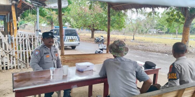 LHOKSEUMAWE – Saweu Keude Kupi, Personil Polsek Muara datu melakukan patroli dialogis berinteraksi langsung dengan masyarakat setempat, sabtu (30/3/2024) pagi.