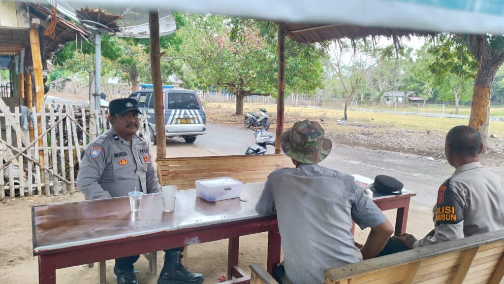LHOKSEUMAWE – Saweu Keude Kupi, Personil Polsek Muara datu melakukan patroli dialogis berinteraksi langsung dengan masyarakat setempat, sabtu (30/3/2024) pagi.