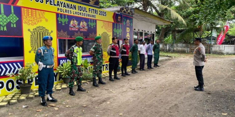 Lhokseumawe – Personel Pos Pelayanan (Pos Yan) Ops Ketupat Seulawah 2025 Polres Lhokseumawe melaksanakan apel pers di Simpang Empat Krukuh, Desa Dewantara, Kabupaten Aceh Utara, Rabu (2/3/2025). Apel ini dipimpin langsung oleh Katim Iptu Faisal sebagai bagian dari kesiapsiagaan menghadapi arus balik Lebaran.