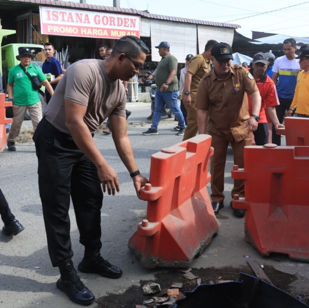 Di lokasi, Kapolres bersama Bupati dibantu anggota lainnya merapikan kembali road barrier (pembatas jalan) yang berantakan di sekitar simpang empat.