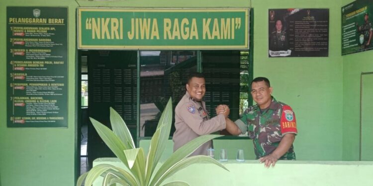 Lhokseumawe – Kanit Binmas Polsek Syamyalira Bayu Aipda herryadi menyambangi babinsa Koramil Syamtalira Bayu Serka Jamiad di makoramil 05 syamtalira Bayu, kamis (4/5/2023) pagi.