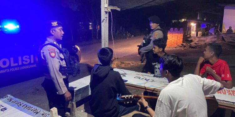 LHOKSEUMAWE – Patroli malam hari, tim Unit Reaksi Cepat (URC) Sat Samapta Polres Lhokseumawe menyisir tempat tongkrongan para remaja di wilayah hukum Polres Lhokseumawe, dalam kegiatan ini personel juga menyampaikan himbauan, Selasa (21/2/2023) malam.