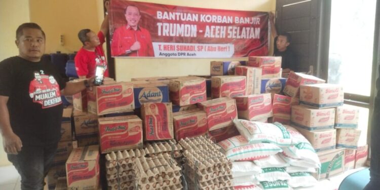 Aceh Selatan – Anggota DPR Aceh T. Heri Suhadi, SP, yang akrab dipanggil Abu Heri, menyalurkan bantuan kepada masyarakat yang terdampak banjir di Trumon, Kabupaten Aceh, melalui relawannya pada Kamis (17/10/2024).