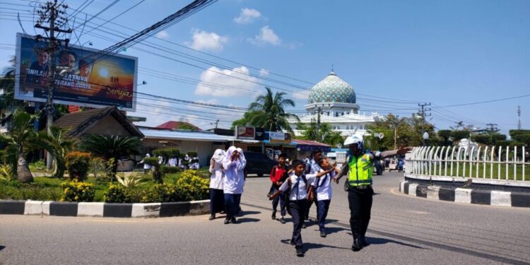 Strong Poin di Kawasan Sekolah, Polantas Lhokseumawe Atur Lalin dan Layani Siswa