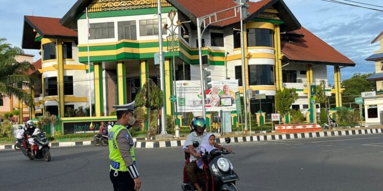 LHOKSEUMAWE – Polantas Lhokseumawe memberikan pelayanan kepada masyarakat pengguna jalan raya melalui kegiatan strong poin di kawasan Kota Lhokseumawe, Senin (22/5/2023) pagi.
