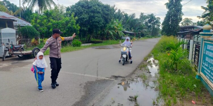 Lanjutnya, dalam kegiatan tersebut Polsek Sawang mengerahkan dua personel untuk membantu siswa menyeberang jalan menuju ke sekolah. “Jalur ini merupakan akses menuju ke sekolah, setiap pagi kita siagakan dua personel di titik tersebut,” pungkas Kapolsek.