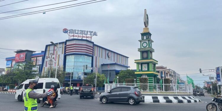LHOKSEUMAWE – Polantas Lhokseumawe melaksanakan strong poin rutin di sejumlah titik penggal atau persimpangan di wilayah Kota Lhokseumawe, Selasa (16/5/2023) pagi, kegiatan ini guna melayani pengguna jalan raya.