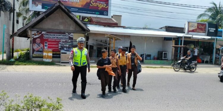 “Personel membantu anak sekolah menyeberang jalan, kegiatan ini untuk mencegah kemacetan dan mengantisipasi terjadinya kecelakaan lalu lintas di kalangan siswa,” ujarnya.