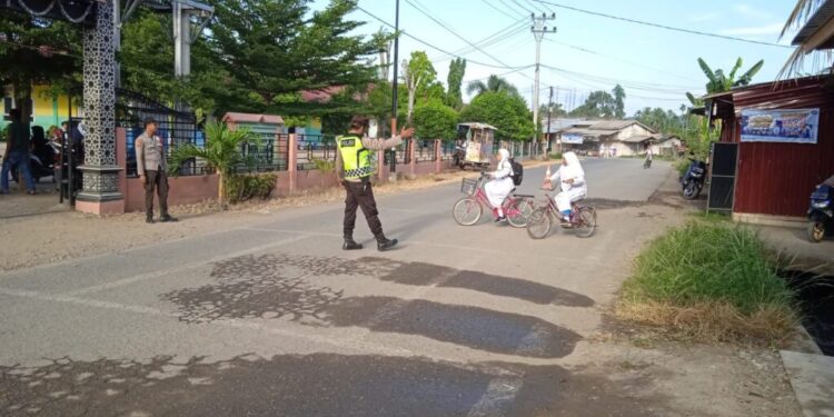 ACEH UTARA Untuk meningkatkan keamanan, keselamatan, ketertiban, dan kelancaran berlalu lintas (Kamseltibcar) di wilayah Sawang, personil Polsek Sawang Polres Lhokseumawe Polda Aceh melaksanakan program pengamanan dan pengaturan arus lalu lintas, yang dikenal dengan sebutan “Strong Point”. Program ini bertujuan untuk mengatasi kemacetan dan mengurangi risiko kecelakaan seperti di simpang jalan Pendidikan dan didaerah Sekolah pada jam-jam sibuk pagi hari. Selasa .11 Juni 2024 Pagi .