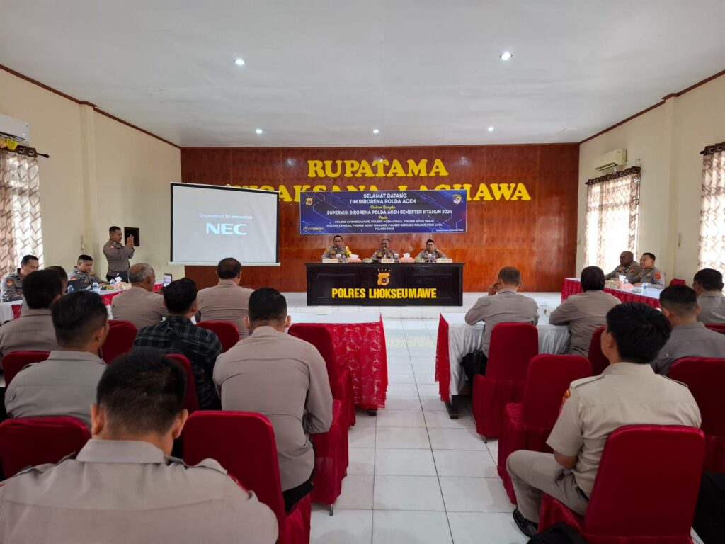 LHOKSEUMAWE – Birorena Polda Aceh melaksanakan supervisi Semester II Tahun 2024 yang berlangsung di Aula Wicaksana Laghawa Polres Lhokseumawe, selasa (5/11/2024) pagi.