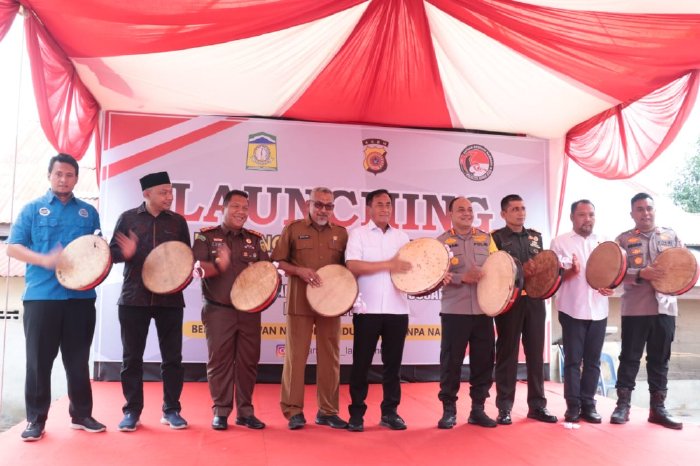 Jantho, - Kepala Badan Kesatuan Kebangsaan dan Politik (Kaban Kesbangpol) Sofian menghadiri peluncuran Kampung Bebas Narkoba yang digagas oleh Polresta ...