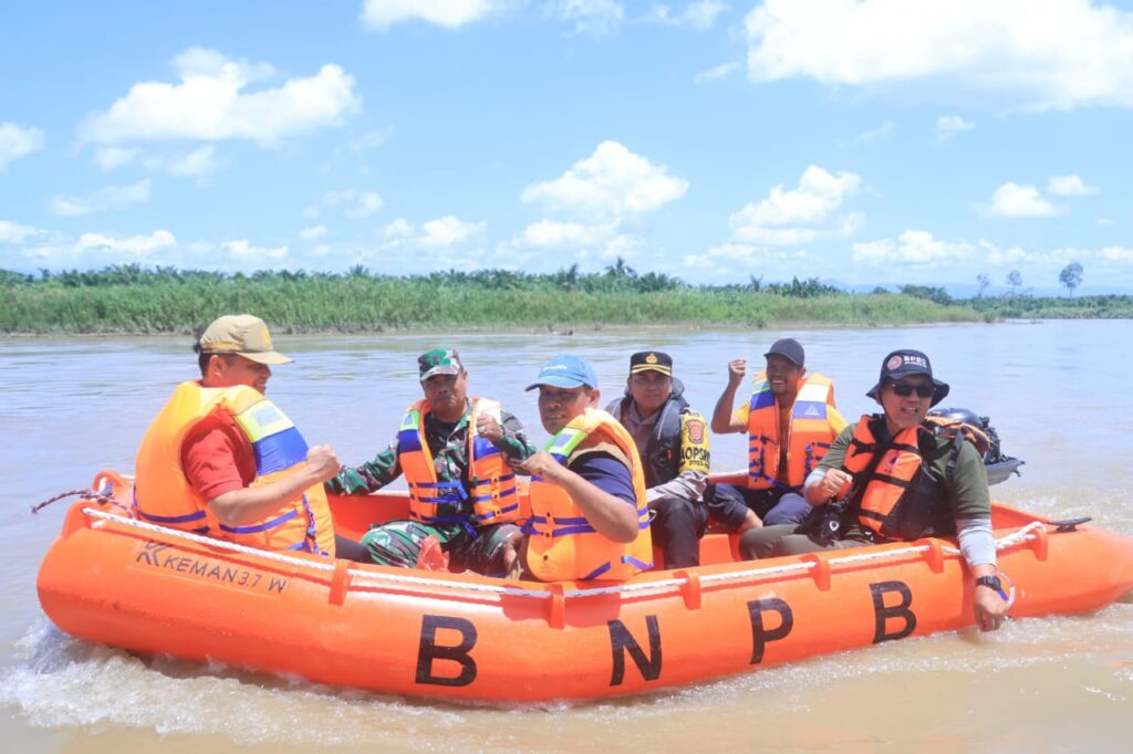 Lhoksukon- Personel Polres Aceh Utara bersama tim gabungan terpaksa mengantar bantuan ke korban banjir di daerah terisolir di Kecamatan Matangkuli, ...