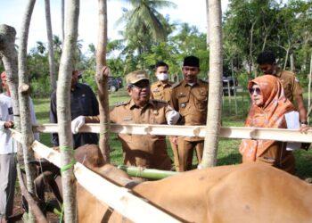 ACEH UTARA — Penjabat Bupati Aceh Utara Mahyuzar meninjau pelaksanaan vaksinasi sapi di Gampong Pulo Rungkom, Kecamatan Dewantara, Senin (25/9/2023). ...