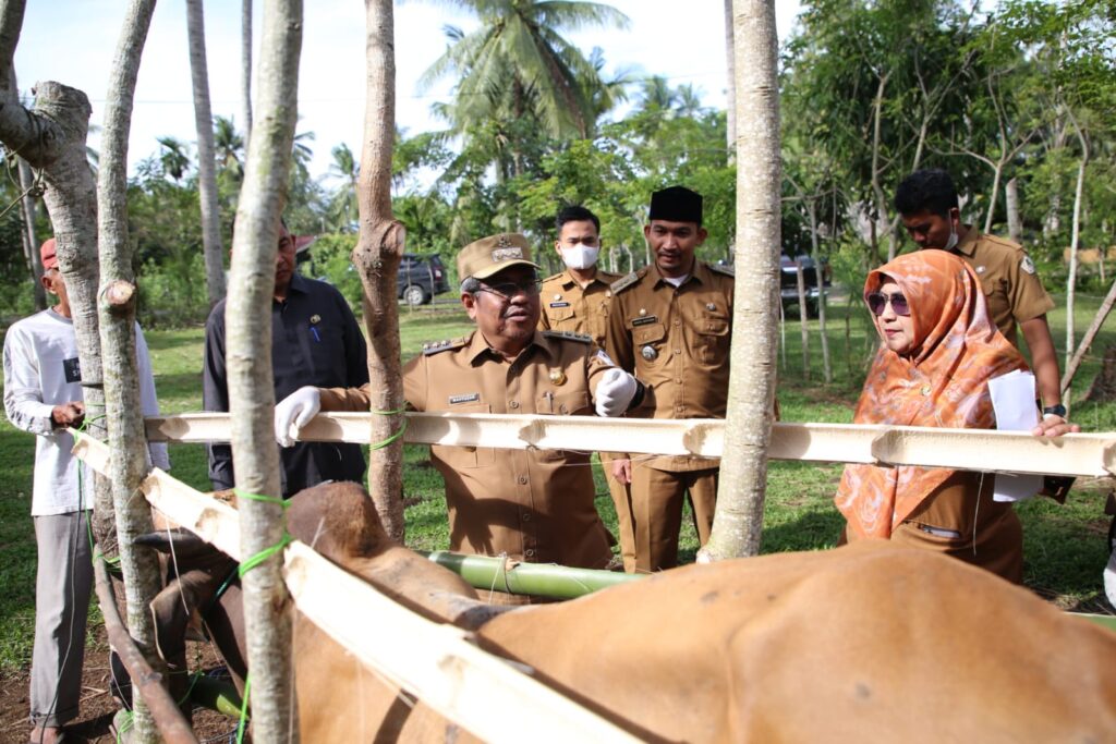 ACEH UTARA — Penjabat Bupati Aceh Utara Mahyuzar meninjau pelaksanaan vaksinasi sapi di Gampong Pulo Rungkom, Kecamatan Dewantara, Senin (25/9/2023). ...