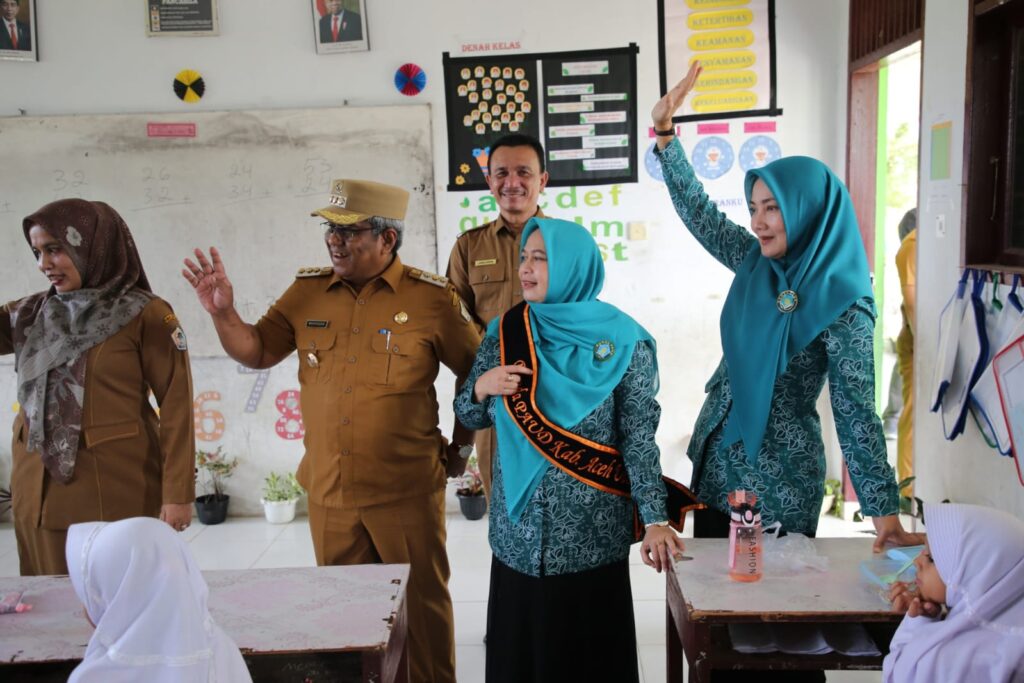 ACEH UTARA - Penjabat Bupati Aceh Utara Dr Drs Mahyuzar, MSi, mendampingi Ketua TP-PKK Provinsi Aceh Ny Ayu Marzuki melakukan ...