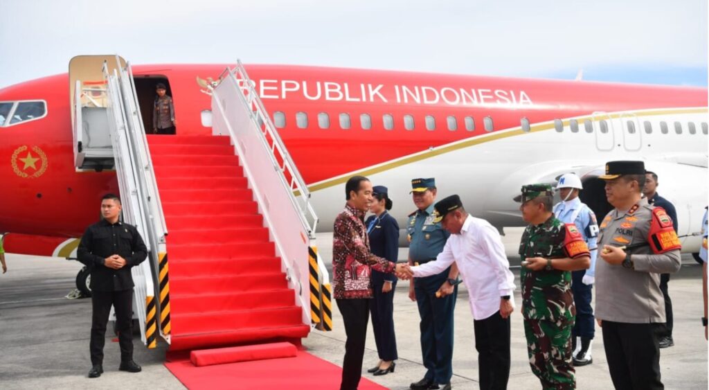 MEDAN - Presiden Joko Widodo tiba di Bandara Internasional Kualanamu, Kabupaten Deli Serdang, Provinsi Sumatra Utara, pada Sabtu, 19 Agustus ...