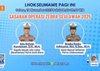 LHOKSEUMAWE – Personel Satgas Preemtif Operasi Zebra Seulawah 2025 Polres Lhokseumawe melaksanakan kegiatan pembagian brosur imbauan keselamatan berlalu lintas kepada ...