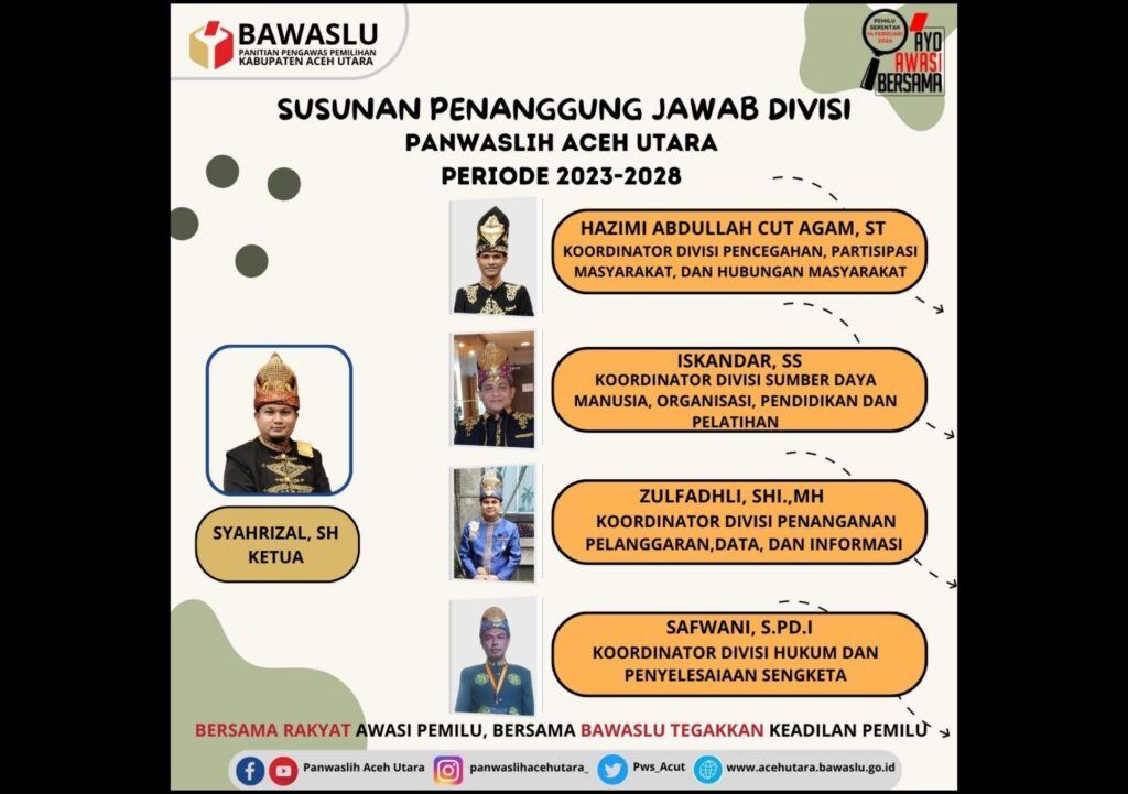 Syahrizal Pimpin Panwaslih Aceh Utara, Berikut Susunan Divisi