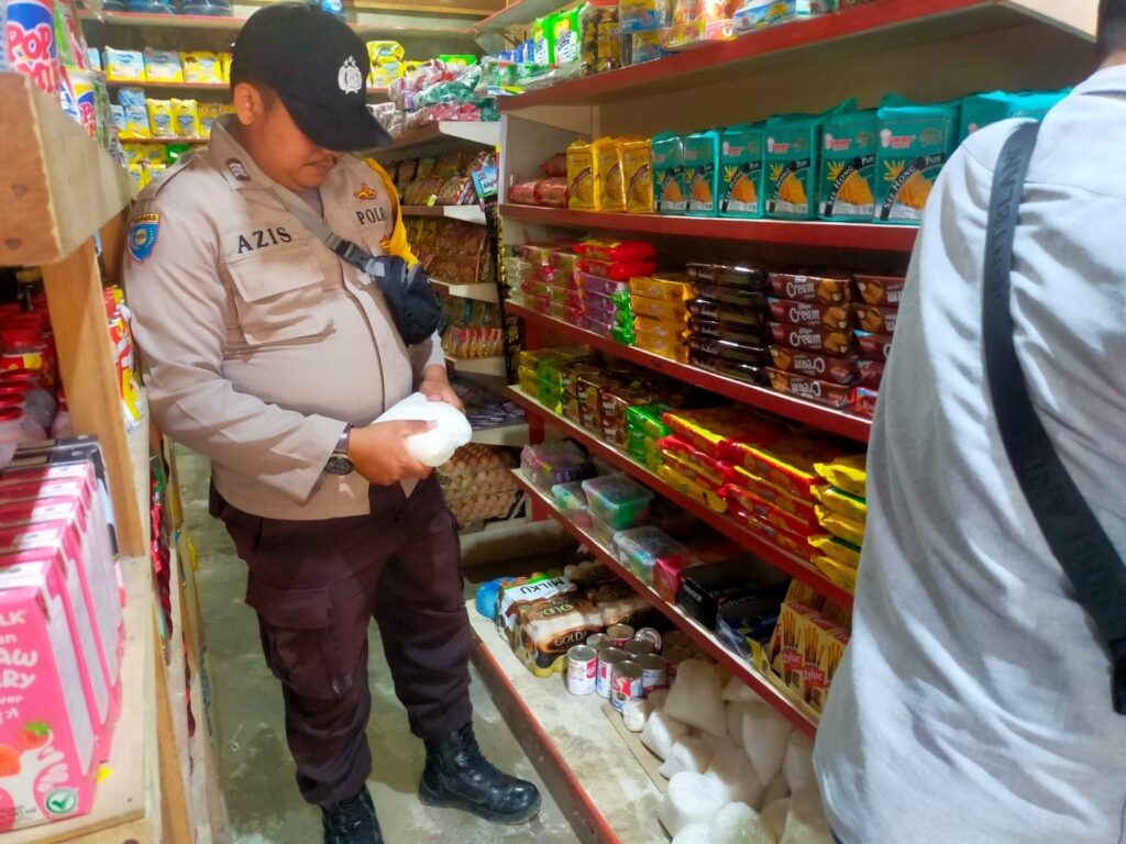 LHOKSEUMAWE - Personel Polsek Kuta Makmur memantau stok sembako pasca Hari Raya Idul Adha 1444 Hijriah ke sejumlah pedagang ...