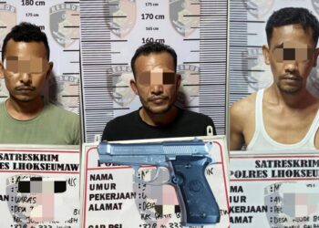 LHOKSEUMAWE - Tim Unit V Resmob Satreskrim Polres Lhokseumawe berhasil membekuk tiga tersangka penculikan dengan menggunakan senjata laras pendek, penangkapan ...