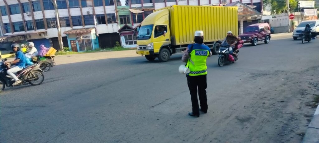 LHOKSEUMAWE - Polisi Meupep - Pep Polantas Lhokseumawe sosialisasi tertib berlalu lintas kepada pengguna jalan raya di bundaran Pos ...