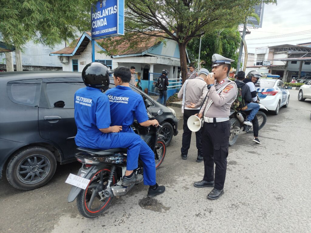LHKOSEUMAWE- Unit Kamsel Satlantas Polres Lhokseumawe melaksanakan kegiatan penyuluhan keliling atau yang dikenal sebagai meupep-pep kepada masyarakat pengguna di Simpang ...