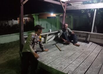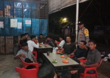 LHOKSEUMAWE - Personel Polsek Meurah Mulia menemui warga di warung kopi (warkop) saat melaksanakan patroli rutin antisipasi gangguan Kamtibmas ...